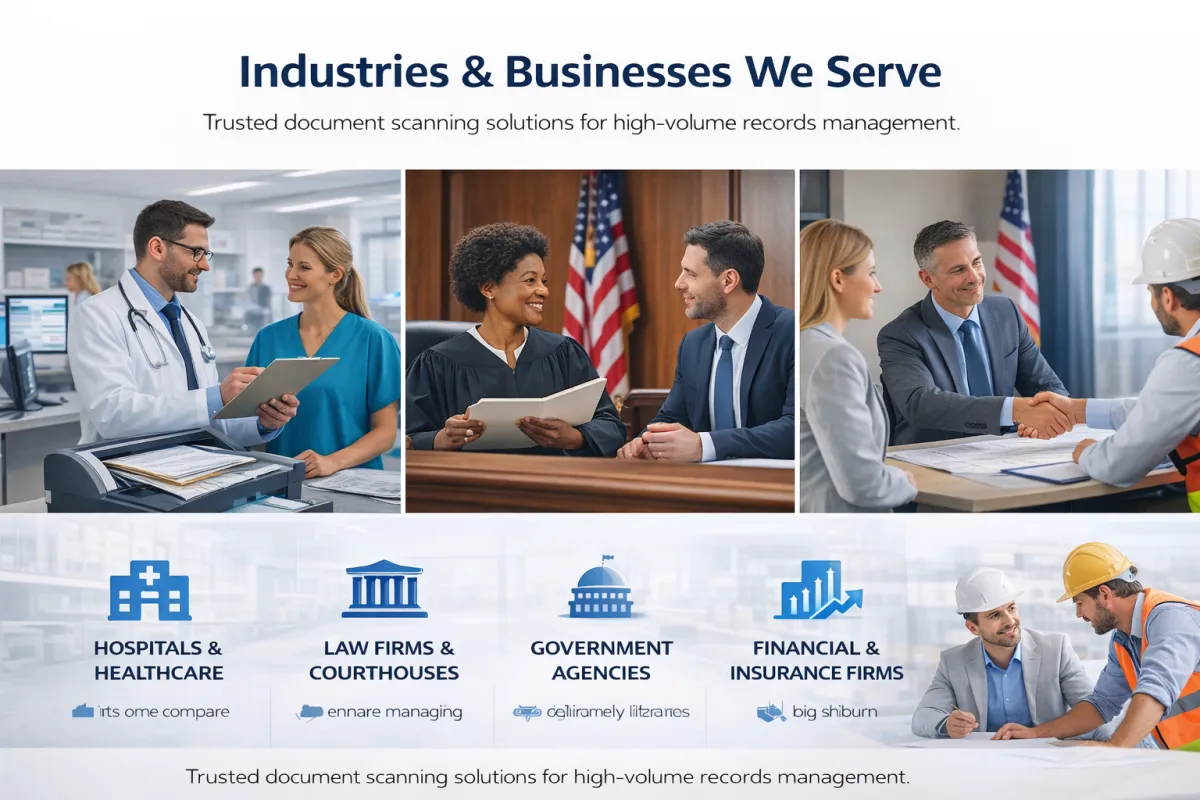 Docusize provides professional document scanning services for businesses that need fast, accurate, and reliable digitization. From high-volume paper records to specialized media like microfilm, microfiche, X-rays, and large-format documents, we help organizations eliminate storage costs and gain instant access to their files.